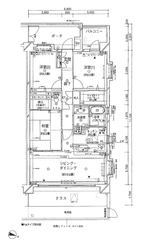 東側にはテラス+お庭で18.5㎡(5.4坪)