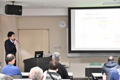 過去に福寿アセットに実際に相談を頂いた事例に基づいてお話しました。親御さんが認知症と思われる方の息子さんから不動産売却相談を受け、色々工夫して無事売却に至った事例をご説明しました。そこから事前の対策がいかに大切か皆さんで勉強いたしました。